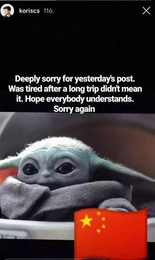 被教练发现后贴在迅速删除,随后的跟帖是他的道歉。