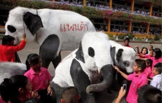 虽然印度多次向中国提出请求,但中国的态度一直都没改变过,因此印度网友们就想出了各种办法。首先印度人民对大熊猫也是十分喜爱,看不到真的大熊猫,还看不到像大熊猫的动物吗?然后在街上就能看到体型十分巨大的大熊猫,其实是大象被人们用颜料涂成了大熊猫的样子。虽然也是黑白色,但和真正的大熊猫差距也太大了点,大象体型太大,那就换一个小一点的。