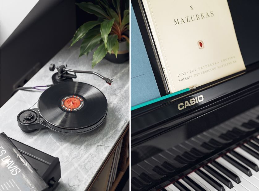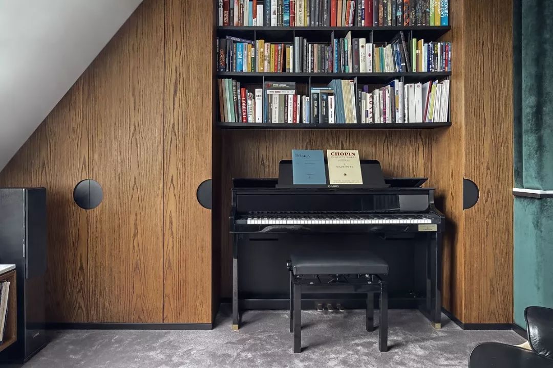 小卧室现在改成了书房,钢琴、音响、书籍、美酒一应俱全不着痕迹地透露出屋主对精致生活的追求