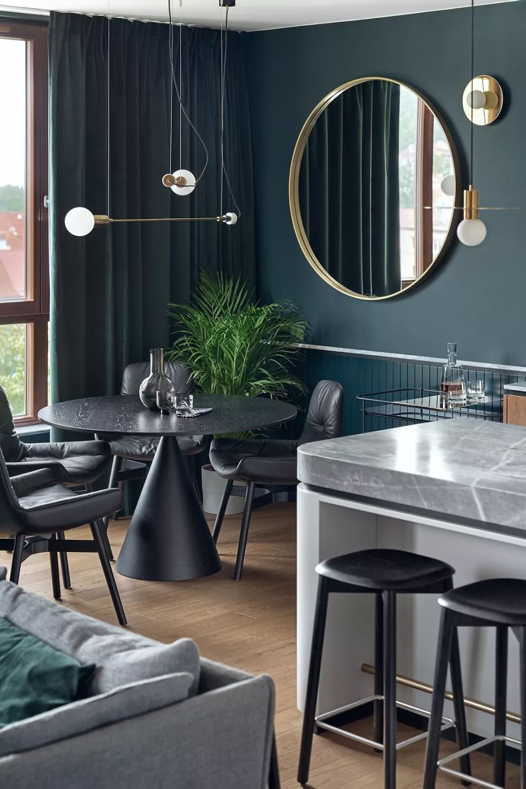 圆形的黑色餐桌给空间带来了优雅气息让生活变得更有情调。