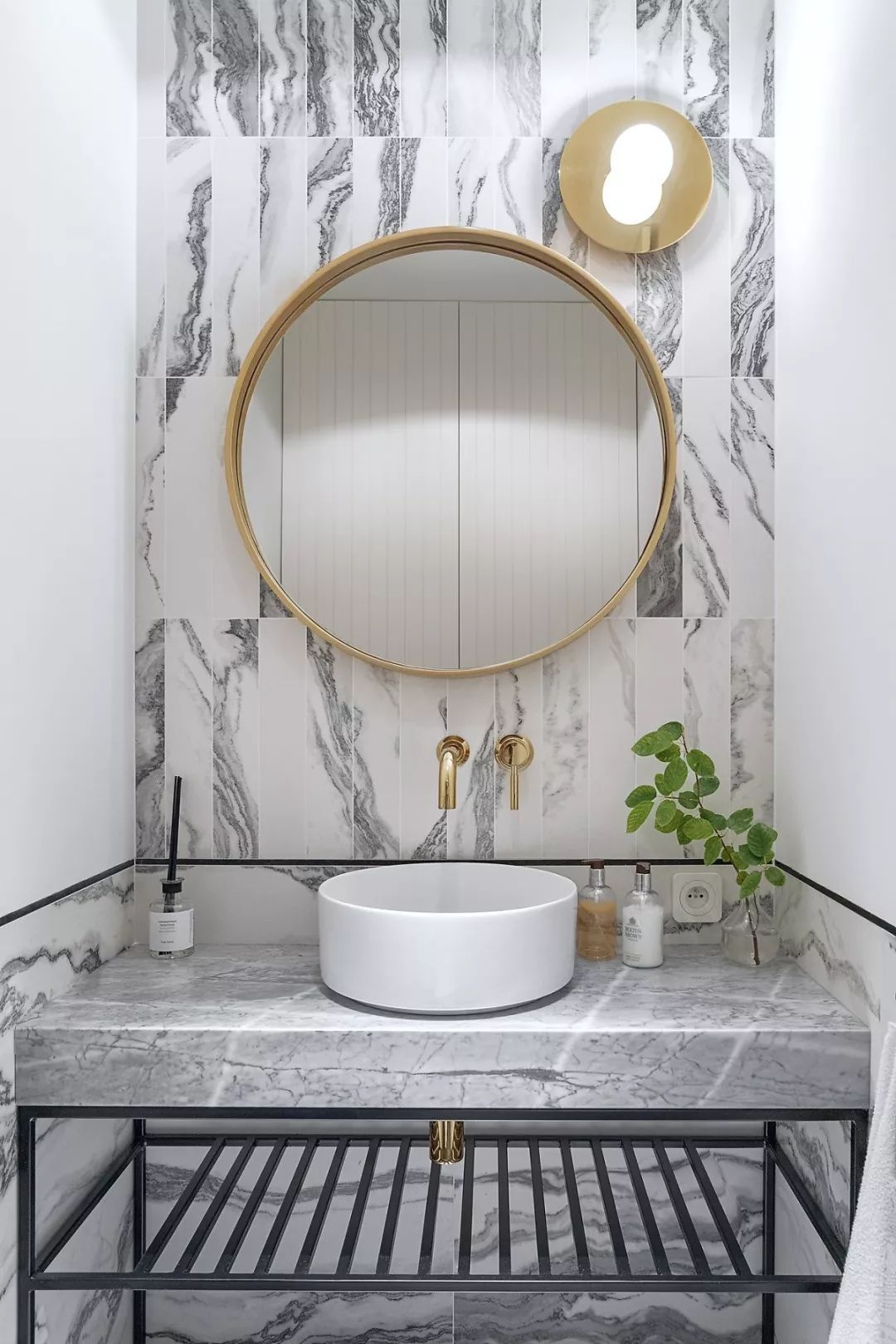 客卫的面积比较小设计师选用比较明亮的色调来缓解小空间带来的压迫感,大理石花纹的瓷砖为空间缔造出丰富的层次