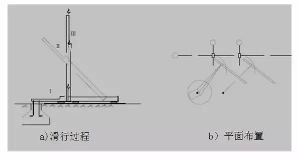 单机或双机抬吊钢柱起重机只起钩,使钢柱柱脚滑行而将钢柱吊起方法,在钢柱与地面之间铺设滑行道。