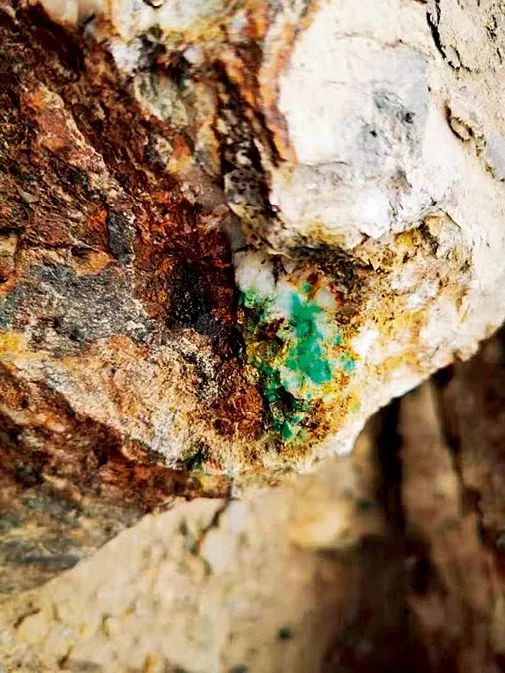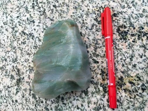 新疆塔玉颜色较丰富,结构多数较细腻,常见青白色、黄色、褐色和浅绿色等,通常颜色分布不均匀。在深山中常年守护塔玉矿脉的是淳朴的塔吉克人,我们这次有幸见到了“守玉人”。塔吉克大叔拿出他采摘的野生橘红色沙棘果给大家吃,沙棘果味道酸甜可口。矿脉下方也多有玉石散落,当地人说“塔玉”的白像极了心目中雪山的圣洁,“塔玉”中的绿象征着荒漠中屹立不倒胡杨树的生命力。美玉多是深山来,开采和利用都不是一件容易的事。矿脉在高山上,目前暂时没有较为安全成熟的攀登路线。亲临“塔玉”矿时,更能体会什么是“自古华山一条路,只有勇者敢攀登”。山壁处碎石滑落,陡峭而险峻,部分险要处山体角度接近90度。据登山探矿的团队老师和成员介绍,攀登时候不要向下看,面向山壁内侧,踩稳脚步,一步一步攀登。最终才有幸探得塔玉矿脉,脉体宽数米,储量巨大,难以预估。当然,一路探矿一路攀登,在此需要深深地感谢护送团队成员上山的塔吉克人,他们善良、勇敢而矫健,在惊险的山势处他们站在山体坡道最外边来保护,以身犯险,为了考察者的安全。
