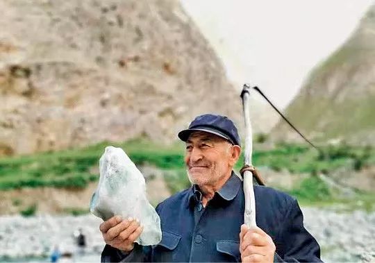 (淳朴热情的塔吉克大叔,手上拿着含有丝脉状绿帘石的石英质玉)