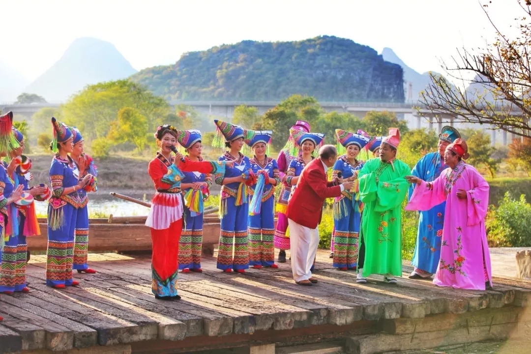 刘三姐的山歌、民族风情、漓江山水等元素水乳交融,浪漫传奇再次重现,给宾客们强烈的沉浸式体验,大家一同对歌,美妙歌声飘荡在山水间。