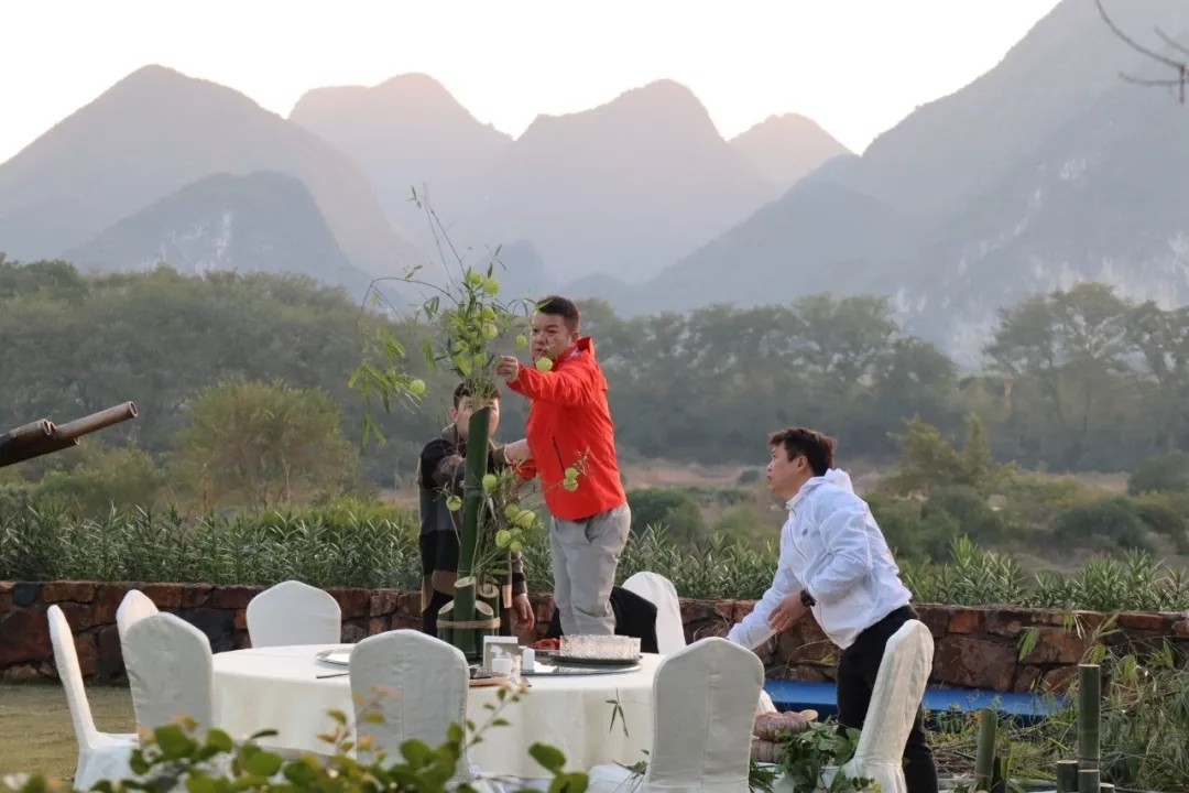 高文安先生在晚宴上发言说道:“今年终于决定选择在桂林水印书院做生日派对。桂林,最重要的就是我们现在背后的山景,这是全世界都没有的,所以我们的派对肯定就要以桂林山水为主角。我们一定要在看到最好的桂林山水的地方做我们的派对。通过水印书院和我们团队的全力沟通合作,把桂林山水在这个晚上完美的呈现了出来。这是多年以来,水印书院最浪漫的一个晚上”