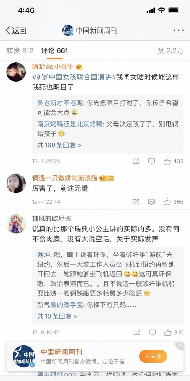 有网友称:“没有号召大家退学,没有矫揉造作乘坐飞艇……9岁的小女孩把熊猫和气候联系起来,引起所有人的兴趣,符合她的年龄。”这就是人与人之间的差距。