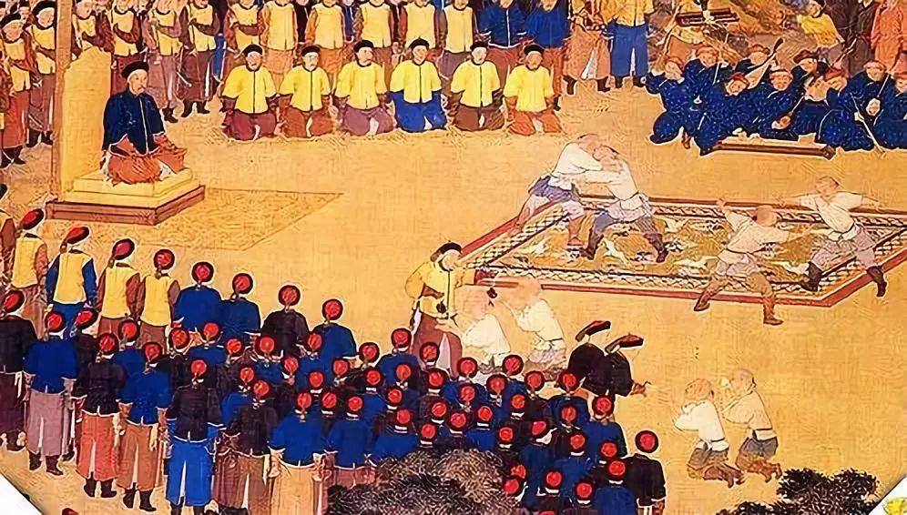 蒙 古人的摔跤活动,原具有极大的体育、军事性质,是用以锻鍊力量和技巧,与选拔力士的依据,到了元帝国建立后,因局势安定,人们对于文化生活的要求日益提 高,摔跤的社会娱乐成分也越来越重。元仁宗时朝廷就专设「校署」职司摔跤管理,并设计专供摔跤的衣服,同时也由具有名望的摔跤手充当兼职裁判。