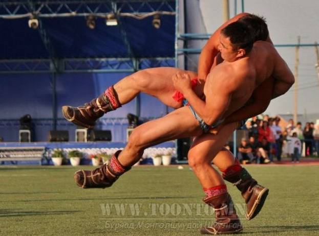 中国蒙古族的摔跤不允许抱腿,着装也与蒙古国、俄罗斯蒙古族有着很大区别: