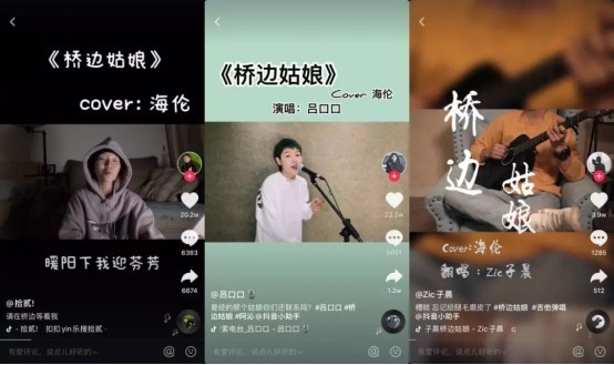 除了音乐平台,《桥边姑娘》也在各大短视频平台掀起翻唱狂潮