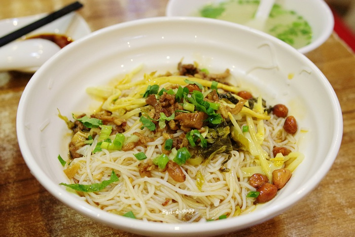 腌海南粉:“腌”在海南话里是“拌”的意思,这一碗粉,配料有酸菜,笋丝(有酸笋的口感,但没酸笋那种独特的气味),略带甜味的肉末,花生米,由咸甜兼具的粘稠酱汁拌成,口味甚是独特。