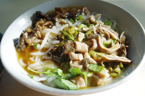 腌抱罗粉:这碗号称猪杂腌粉,但是看起来跟海南粉,酸粉区别并不大。实际上口味也近似,感觉海南所有的腌粉卖相都差不多,最大的差异就是抱罗粉用的是粗粉吗?