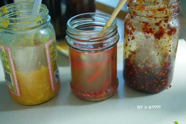 桌上的辣椒酱有三种,分别是黄椒酱、辣椒水、和剁椒酱。肯定要加一点口味才丰富,否则直接吃会觉得稍显淡寡。