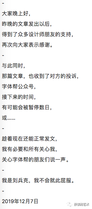 刘兵克10月6日晚上10:12在公众号字体帮发文: