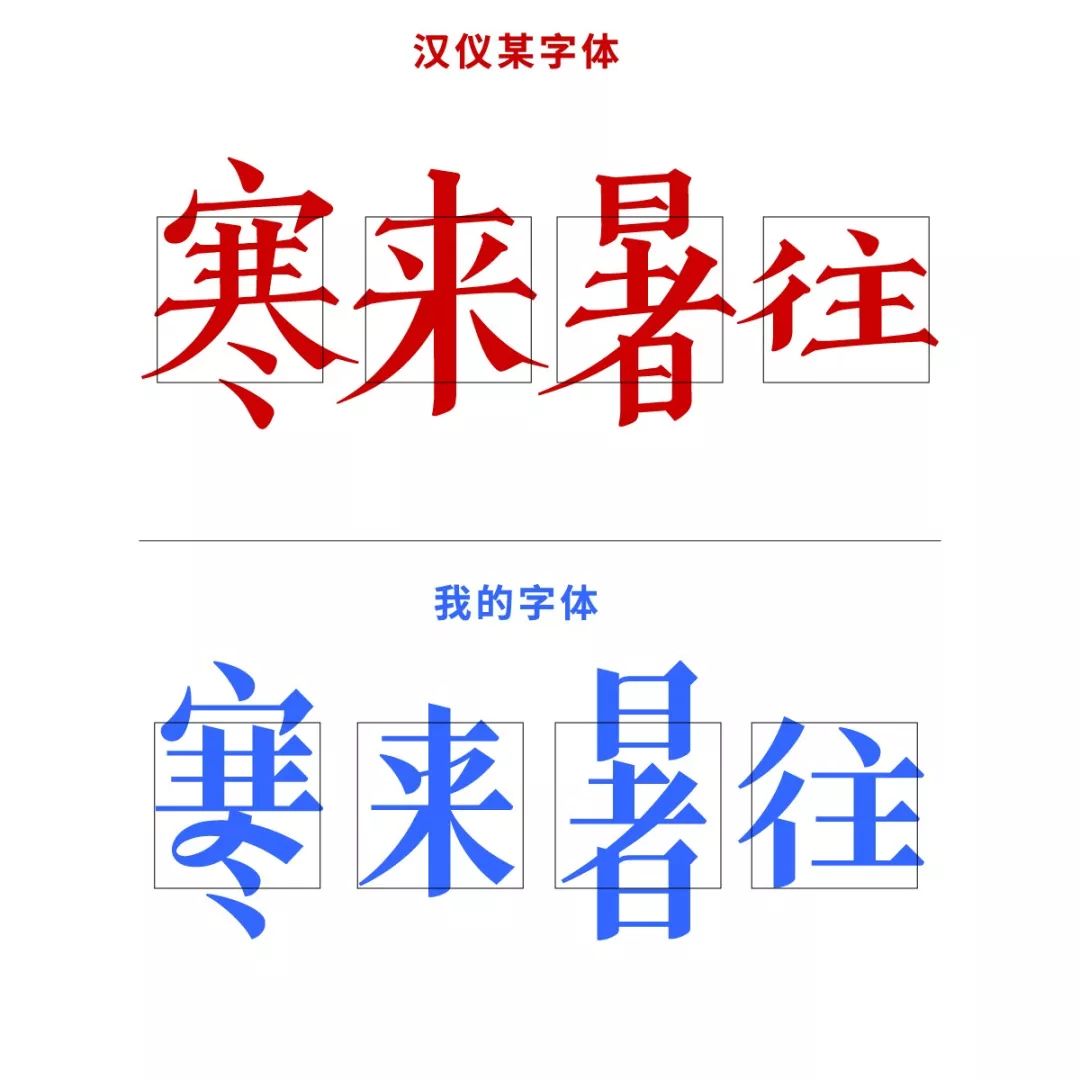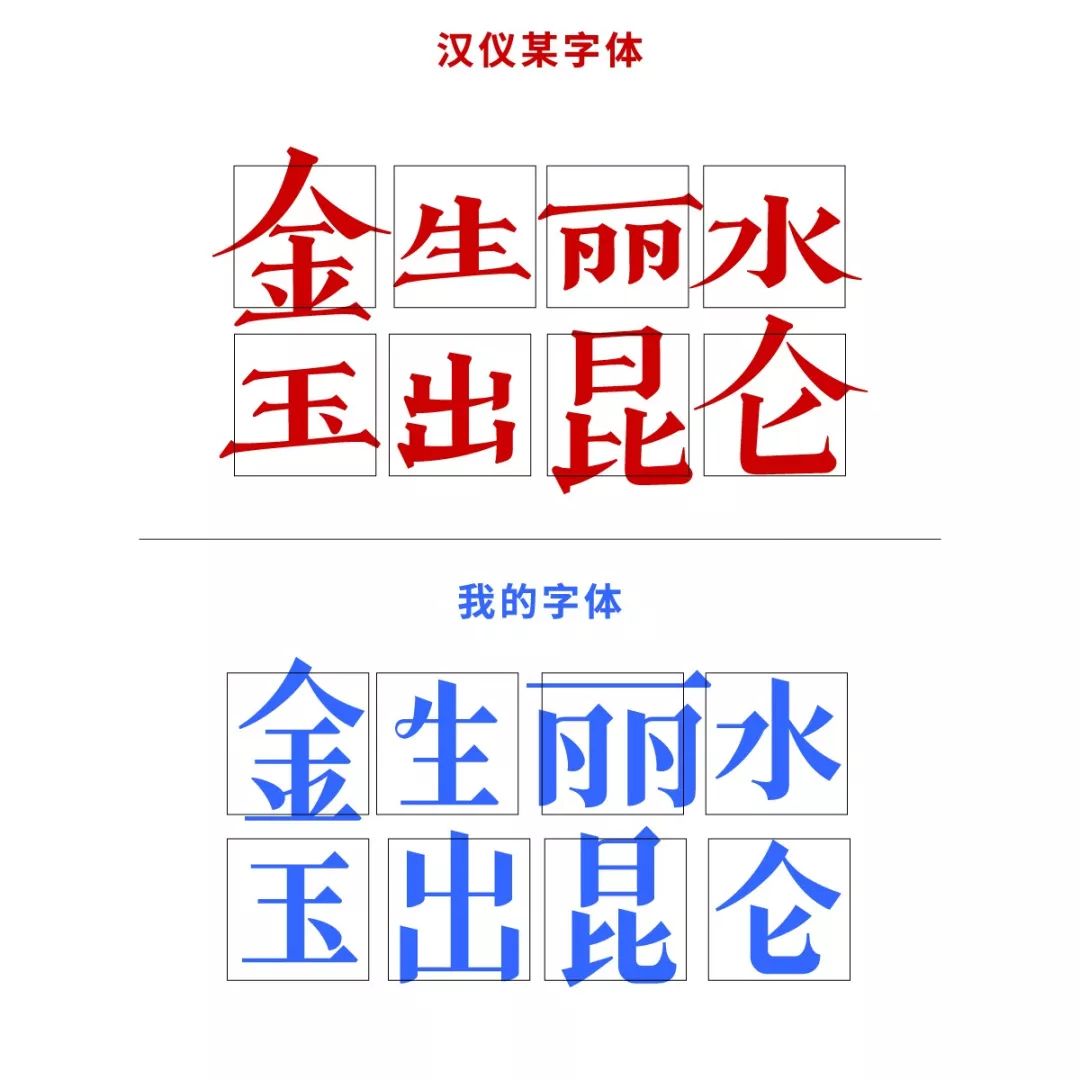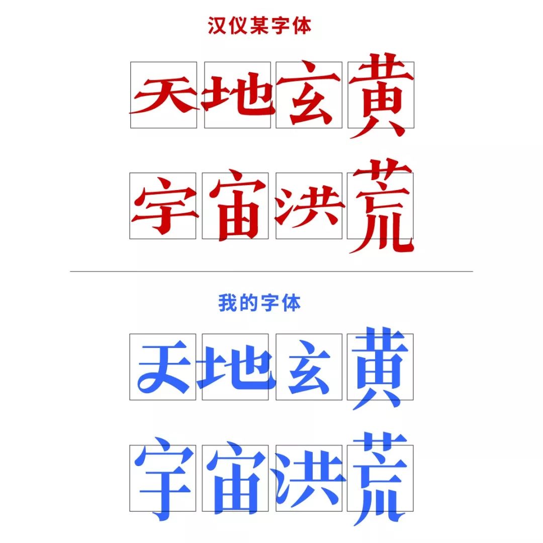 我的字体(上),汉仪的字体(下):