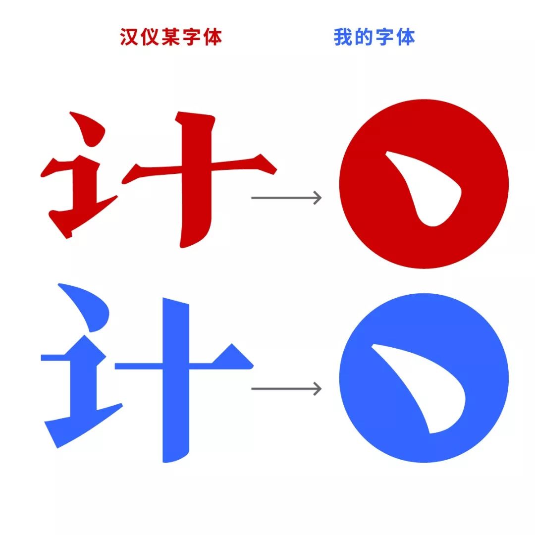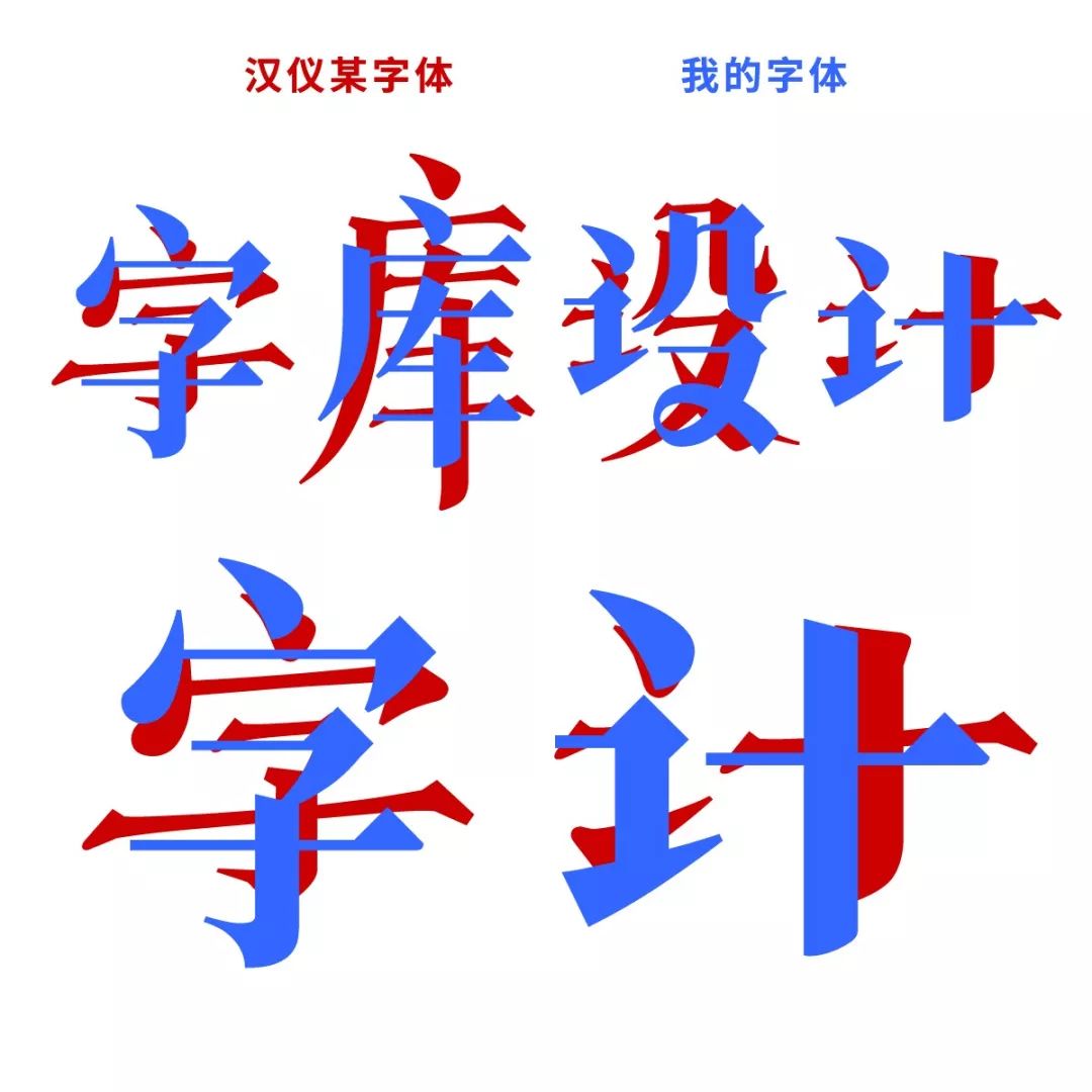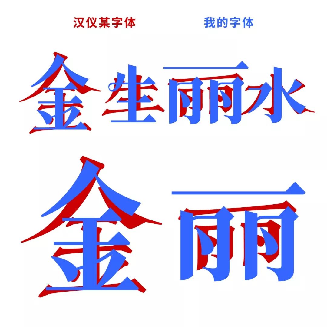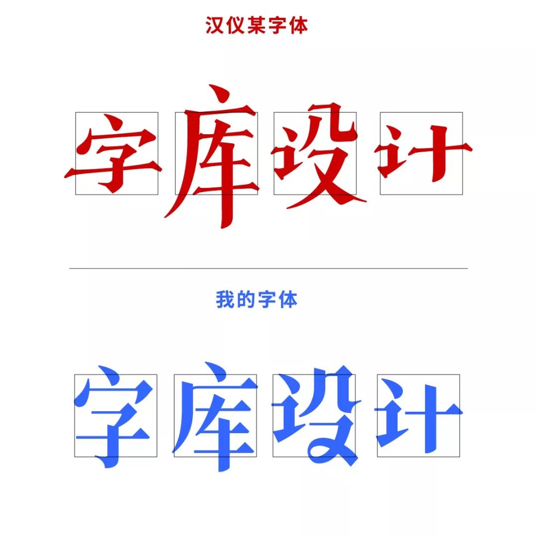 我的字体(上),汉仪的字体(下):