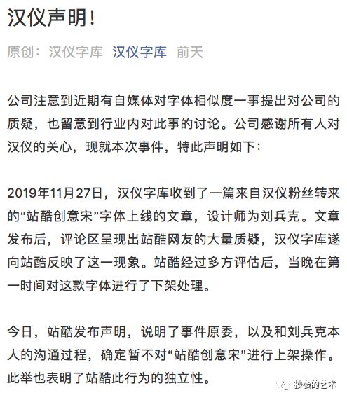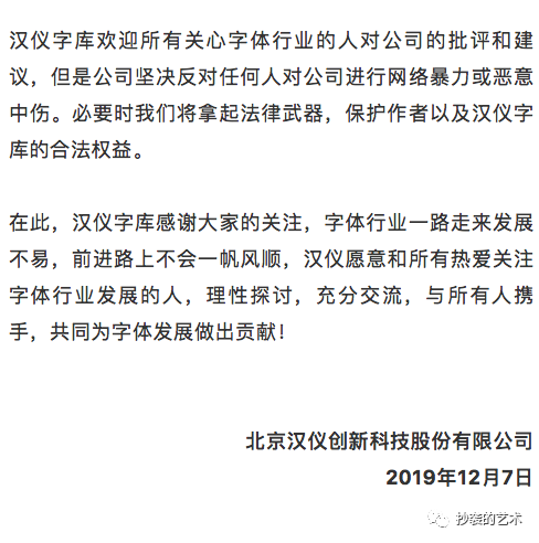 汉仪官方公众号也于12月7日下午六点发文: