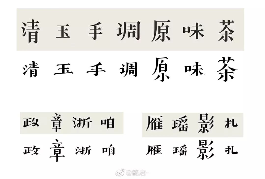 @範启-:关键只有谷龙的古趣有这种一高一低、一大一小节奏感的。这种节奏感可不是随意借鉴抄袭的呀,你可以把古趣的笔画加工修饰,但是这种节奏感抄袭是几个意思?说了半天不是笔画的问题,而是你们抄袭了这款字体的整体节奏感。所以看上去是大同小异的,最后导致抄袭风波。丽水的丽玉出的出还特意放大......