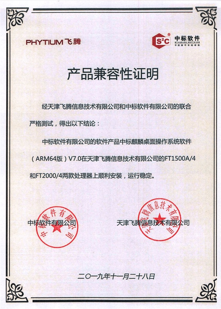近期,中标软件有限公司(中标软件)与天津飞腾信息技术有限公司(飞腾)宣布:中标麒麟操作系统与飞腾芯片完成桌面及服务器产品兼容互认证。中标麒麟操作系统以开放技术,完全支持并兼容飞腾芯片。