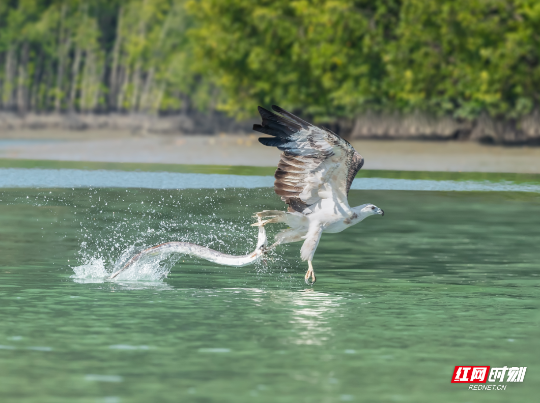 “这条鳗鱼肯定跑不掉了,只能成为它的腹中食啦!”生态摄影师余敏在拍下白腹海雕捕食画面时激动地说道。今年3月,余敏在马来西亚拍摄这组照片。