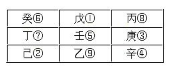 步流程骤三::天盘九星的排序。依据“值符随时随地干”的规律,看时辰的天干地支在几宫,就将值 符立即写在这一宫腔内。其他的星按顺序转到到相对的部位。 例比如如::这局的值符为天蓬,丁卯的天干地支为“丁”,在兑七宫,故应将天蓬写入兑七宫, 其他八星按原次序写入运行到的宫腔内。 步流程骤四::人盘八门的排序。依据“值使随时随地宫”的规律,明确值使所落宫位。即从“值 使”所属宫位和其十二地支時间我排,依据阳顺阴逆标准,一直数到所拿取时辰的十二地支,此 时该十二地支到几宫,“几宫”即是值使所落宫位。其他七门按原固定不动次序写入运行到的宫 内。八门随時间一个时辰走一个宫,从一宫至九宫,到第十个时辰又返回本王。 比如:这局的值使为休门,在坎一宫,这时旬别为甲子年。亦即“子”时,休门运行到坎 一宫。依照阳顺阴逆规律,丑时则到坤二宫,寅时到震三宫,卯时到巽四宫。丁卯的 十二地支时辰为“卯”,这时落入巽四宫,即是值使休门所落宫位。其他七门按“休,生, 伤,杜,景,死,惊,开”的固定不动次序,顺时针方向一一写入九宫,二宫,…八宫,三宫。 步流程骤五五::八神盘的排序。依据阳遁顺时针方向运行,阴遁反方向运行的规律,及其小值符 始终追随着最大值符的规律,将神盘里的小 值符写入最大值符所落宫腔内,再将其他七神 按原固定不动次序一一写入其他七个宫腔内。 例比如如::这局中,将八神的(小)值符立即写入兑七宫,其他七神按“值符,塍蛇,太 阴,六合,白虎星,玄武门,九地,九天”的次序,顺时针方向一一写入六宫,一宫,…二宫, 七宫。 到此,就进行阳遁一局 甲子日,丁卯时的起局了,如图所示。