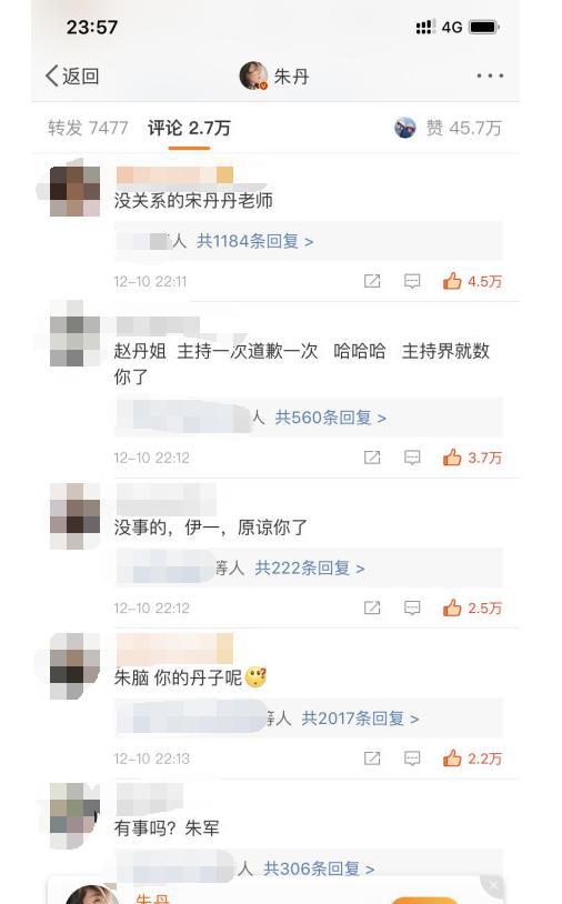 如今这才隔了没几天又犯同样的错误,那这样的道歉还有真诚可言吗?于是不服气的网友组着队的“怼”她。有叫“宋丹丹”的,有叫“朱军”的,也让朱丹在线感受了一把被叫错名字的尴尬。
