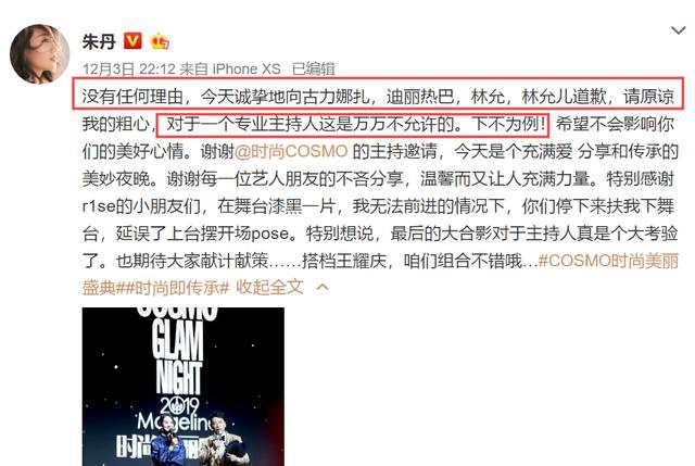 而在事后,朱丹也用了同样的微博道歉法来发文道歉,不仅言语间能感受到她的自责和羞愧,还配上了颇为疲惫的侧影表示自己真的很累。