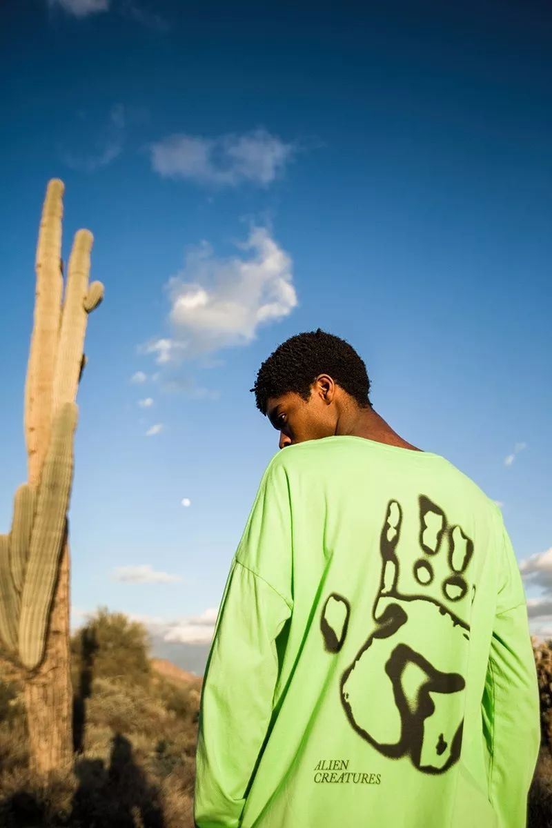 在最新发布的 19 秋冬系列中,SIBERIA HILLS 围绕亚利桑那州沙漠中的巨型仙人掌上拍摄 Lookbook,散发出异国邪典的迷幻氛围,对于迷彩、单宁布料的大量运用,以及扎染、动漫人物元素的装饰点缀,更将 SIBERIA HILLS 独一无二的 DIY 美学演绎的淋漓尽致。