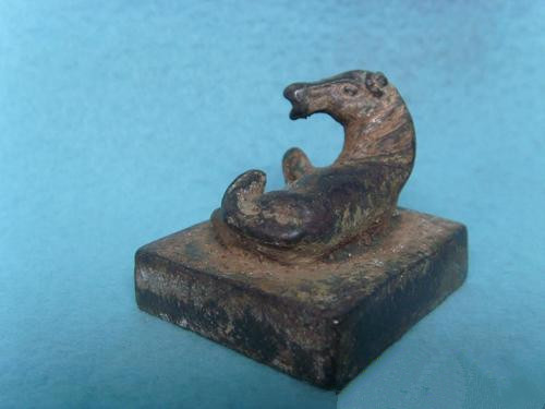 我们先看看这方铜印,它为钮铸卧马,造型非常生动精美,印文“归义侯印”,白文篆书,书法淳古遒健,刀法得体有力。经过专家们结合窖藏中其他文物的造型特征和史书记载,考证得出结论,这方铜印的主人,应该是甘肃五凉时期末代前凉王张天锡。