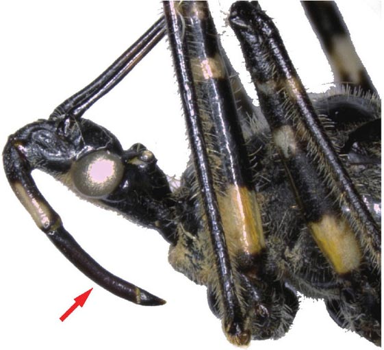 蝽类的刺吸式口器(箭头所指)