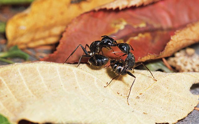 蚁的眼睛,也和蜻蜓一样,是由几千小眼集成的。不过雌蚁和雄蚁的小眼数,要比工蚁多些,因为空中结婚时,眼睛是发现异性的重要器官。