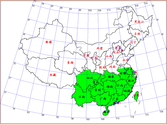 图 1-2 台湾乳白蚁在我国的分布(绿色部分)台湾乳白蚁兵蚁