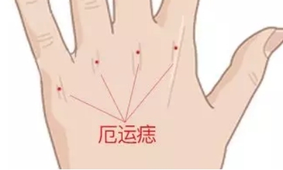 手背上的食指、中指、无名指、小指四个指关节下不是好痣。这里有痣意味着生活中会有很大的困难。具体的时间还需要参照手掌的生命线。有几个痣就有几个很大的困难。
