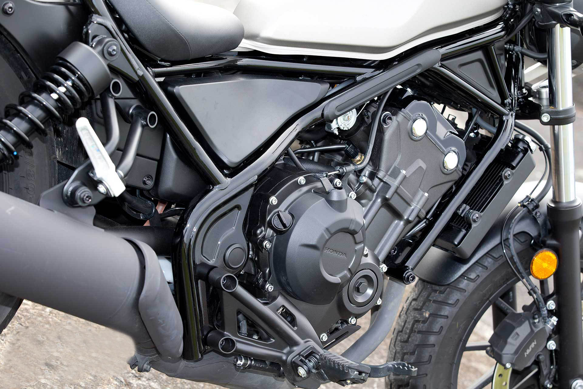 该发动机本质上与目前的CBR500R,CB500F和CB500X相同,排量471cc的双缸发动机。这款发动机针对CMX500的城市表现进行了重新调整,其节气门响应经过了精心设计,曲柄平衡器的相位和质量略有不同,低转输出更加平顺,并增强了类似巡航的骑行风格。
