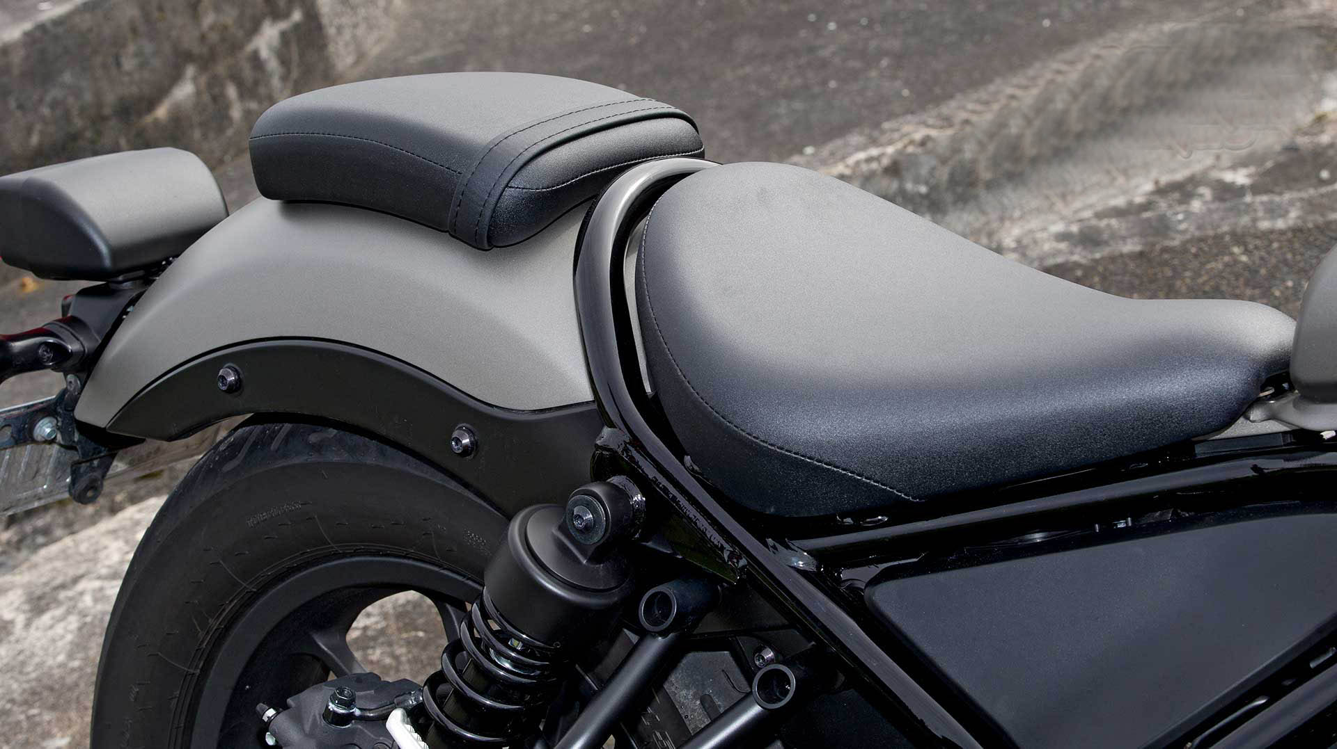尽管在大多数图片中,CMX500看起来更像是单座车型,但摩托车随车赠送了免费的乘客套件。座椅只需直接用螺栓固定在后挡泥板的顶部,然后将销钉旋入右侧的排气吊架,并提供一个用于安装左侧销钉的支架,就可以完成后座的安装,载人完全没有问题。