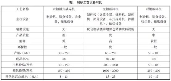 通过对以上3种制砂工艺设备优缺点进行对比(见下表):
