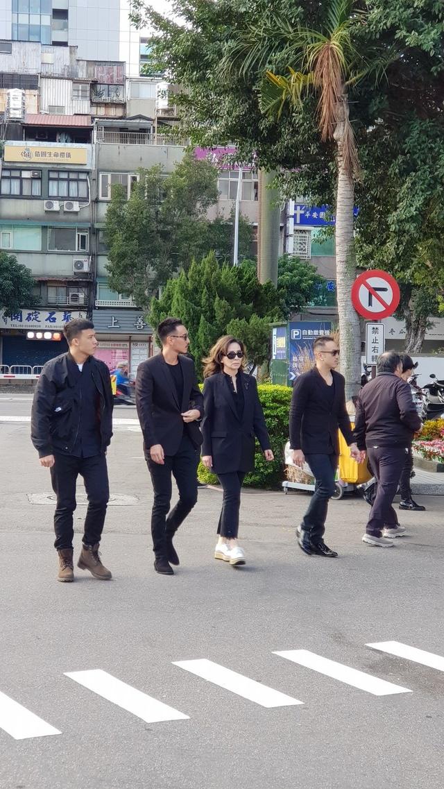 高大哥、二哥在稍早捧牌位,协助移灵到告别式会场,女友紧跟在后。