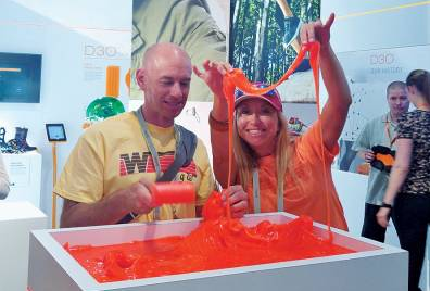 例如跟D3O一样“遇软则软,遇硬则硬”的P4U材料。P4U智能材料是一种可对环境感知、响应,并且具有发现能力的材料,它是通过分子设计和有机合成的方法使有机材料本身具有生物所赋予的高级功能:如自修复与自增殖能力、认识与鉴别能力、刺激响应与环境应变能力等。P4U 智能材料为非牛顿流体物质,在常态下保持松弛的状态,柔软而具有弹性,一旦遭到剧烈碰撞或冲击的时候,分子间立刻相互锁定,迅速收紧变硬从而消化外力,形成一层防护层,当外力消失后,材料会回复到它最初的松弛软弹状态。它可以在瞬间对不同的冲击情况作出不同的反应。