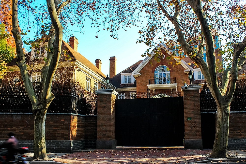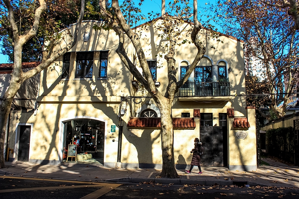 衡山路,1922年由上海法租界公董局修筑,公董局相当于公共租界的工部局,是上海法租界最高的市政组织和领导机构。当时起名贝当路,1943年10月更名为衡山路,整条街全长2.3公里。现在的衡山路是上海市一类风景街道,64条永不拓宽的街道之一。衡山路最吸引我的还是马路两边的梧桐树,虽然现在树叶开始掉落了,但总是有种说不出来的美丽和独特的魅力。初冬的衡山路特别美!于是,选择了平日里游人不多的下午,游走在老上海法租界内,从市百六店后面开始,沿衡山电影院、衡山宾馆,拐吴兴路,绕康平路,转宛平路,返回衡山路,一路上,时不时地为路过某一栋欧式风味十足的洋房而驻足。擎起相机,拍下一切可以值得留念的美好。