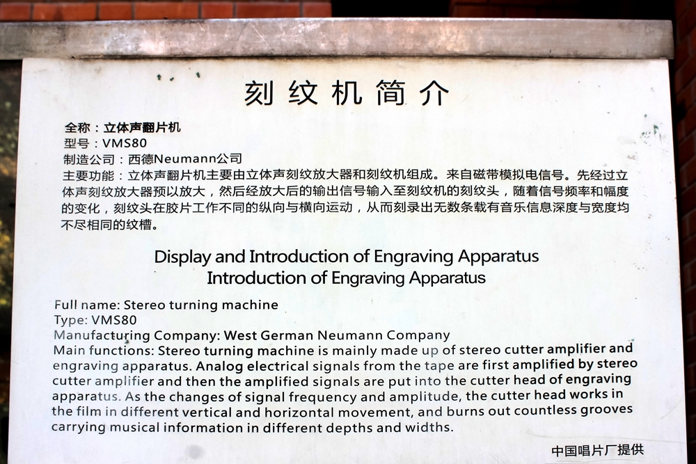 原来小红楼前的那台刻纹机的全称是VMS80立体声翻片机,是当时西德NEUMANN公司的产品。它主要由立体声刻纹放大器和刻纹机组成,功能就是把磁带的信号转到唱片上。