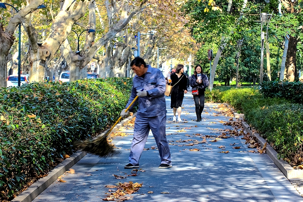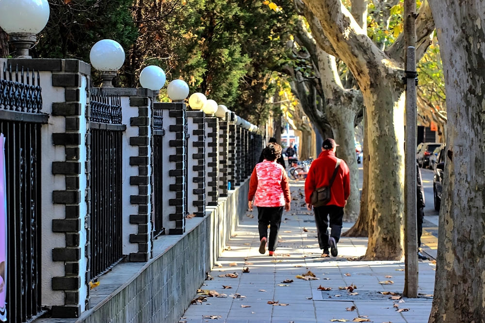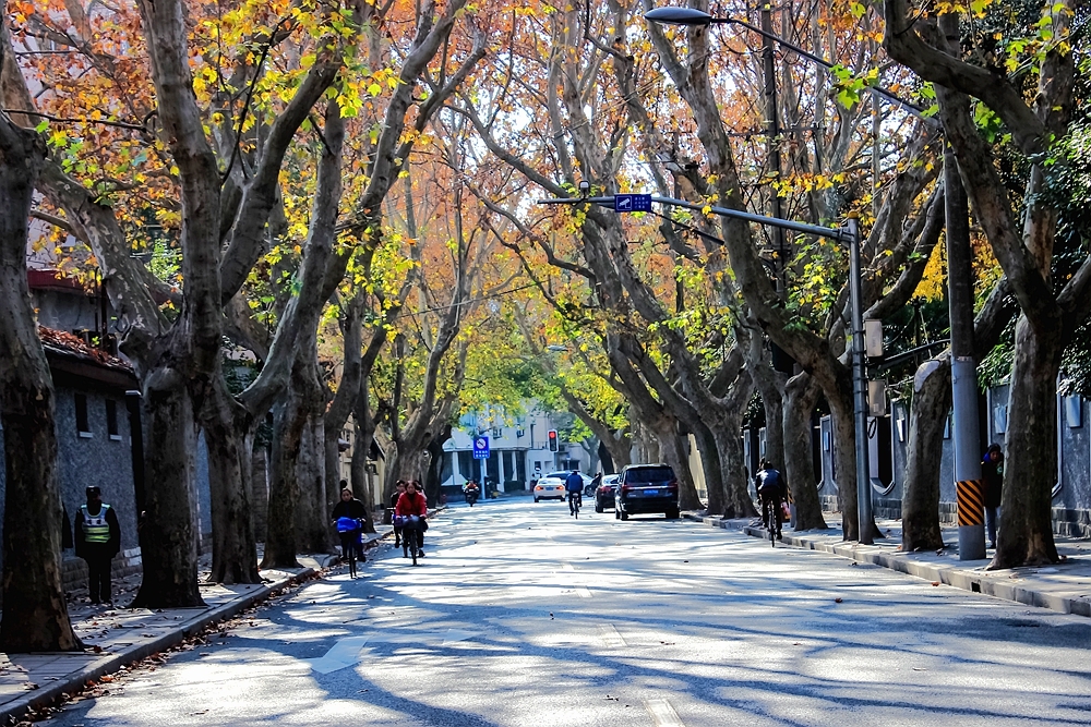衡山路人行道上种植的法国梧桐年代久远,是沪上梧桐树最密集、景观最优美的道路之一。