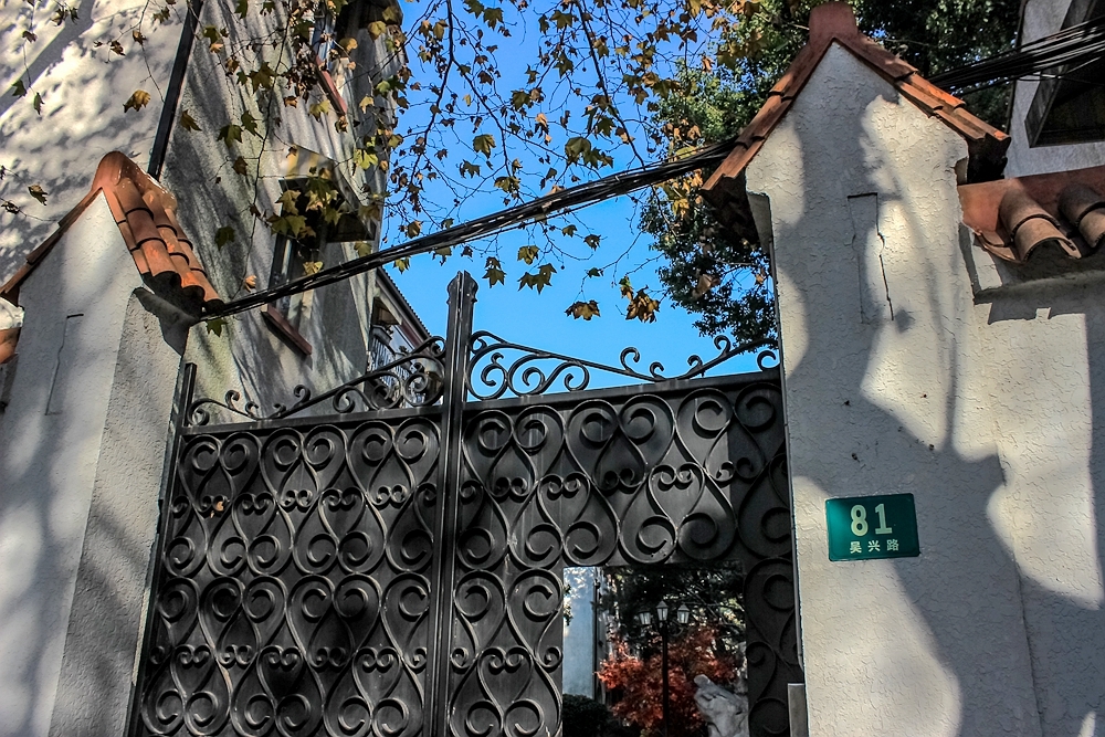 吴兴路81号,建于1939年。典型的西班牙式花园住宅。围墙高高,庭院深深,铁门开启着,溜进去拍了几张照片。