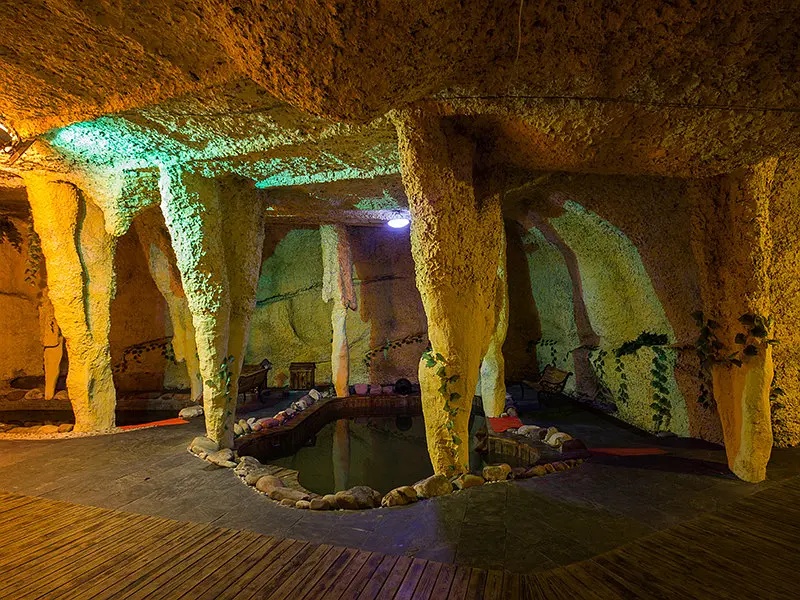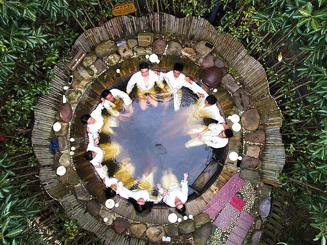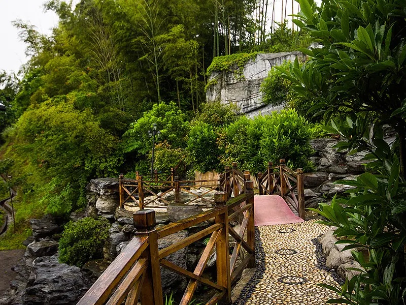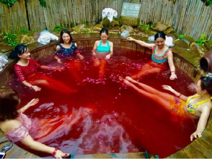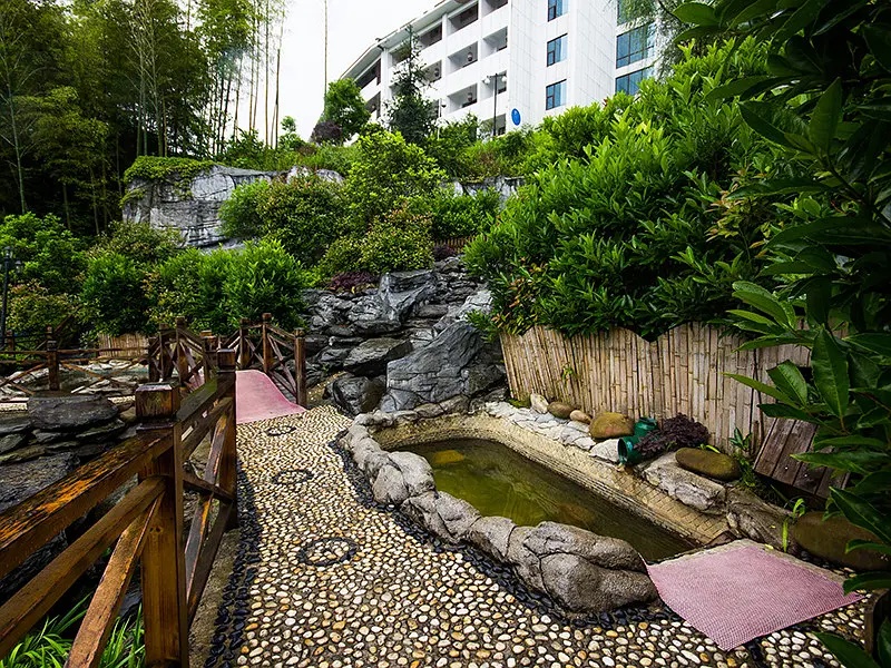 山庄内共有6个温泉池,其中室内温泉2个,室外温泉4个,分别有生姜温泉浴、玫瑰花浴、当归浴、绿茶浴、苗药浴。