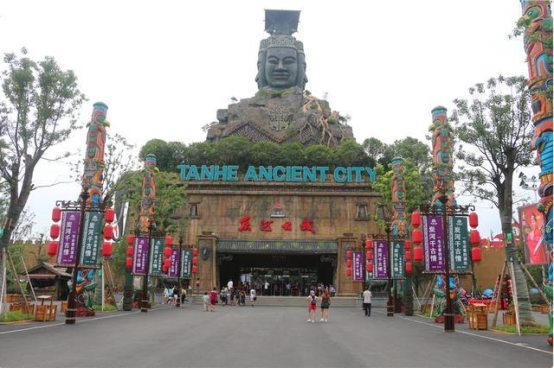 抵达炭河千古情景区之后,相信很多人都会有和我一样的感受,那就是挺气派,尤其是景区的大门,一个巨大的四羊方尊女神像呈现在眼前,炭河古城四个大字赫然显目。