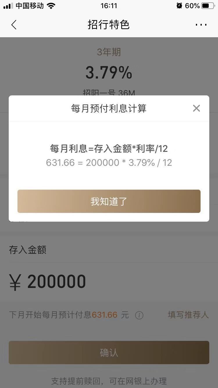 以3年期10万起存利率3.79%为例,20万存3年,每个月可获得的利息是631.66元。