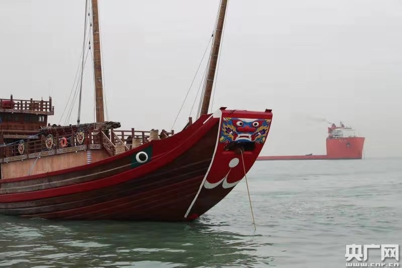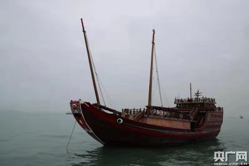 世界最大仿古航海木帆船“福宁”轮出境(央广网发 通讯员供图)