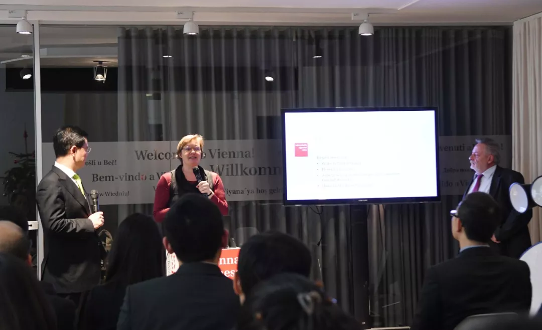 研讨会的第一个环节中,来自维也纳商务局的卡尔·霍斯曼(Ing. Karl Hosemann)及亚历桑德拉·斯托尔艾特硕士(Mag. Alexandra Stollreiter)向与会嘉宾介绍了维也纳商务局对企业在维也纳进行投资的各类扶持政策和服务内容。维也纳商务局为使维也纳企业实现现代化,同企业界一直密切合作,有直接商务支持团队,每年会对五百到七百个项目进行资金支持,规模超过3500万欧元,直接发放资金甚至高于这个数字。根据不同项目类型,维也纳商务局提供资金支持份额可占项目投入的10%到80%不等,研发类项目获支持的份额往往较高。此外,维也纳商务局也会为企业提供房地产方面的支持,比如出资建设办公场地等,对初创企业和外国企业进入维也纳投资也提供相应咨询服务。