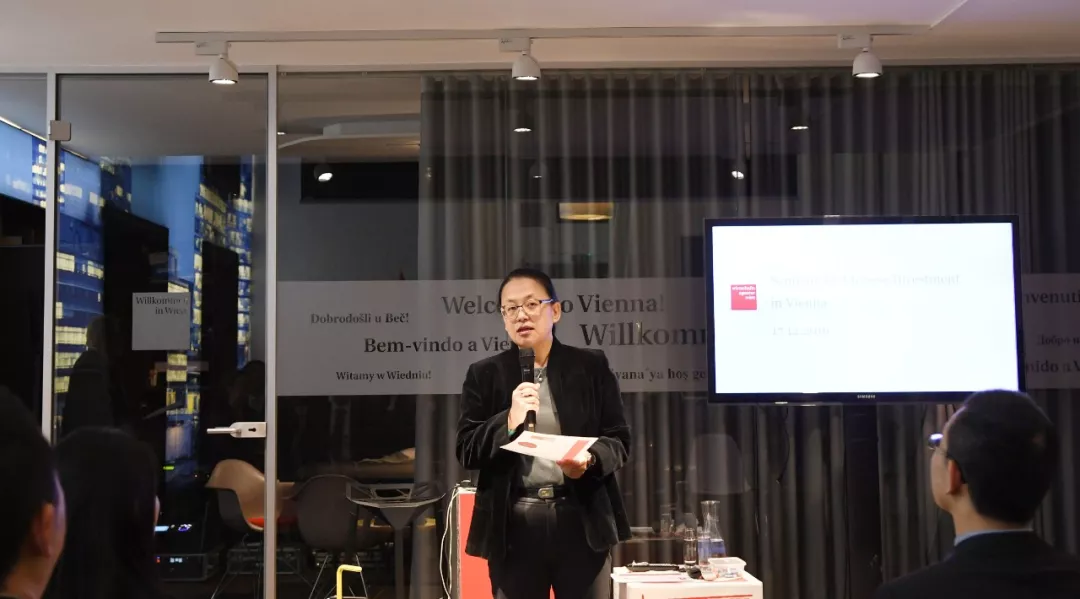 维也纳商务局Xiaojun (Jennifer) Zhang主持研讨会