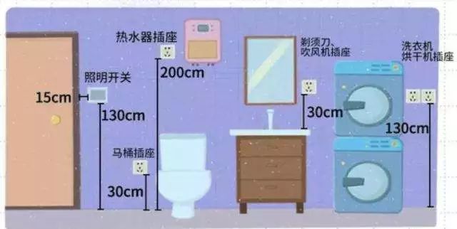 从实用的角度合理安排开关、插座的位置,例如:排风扇开关、卫生间电话插座应装在马桶附近,而不是装在卫生间进门的墙边。
