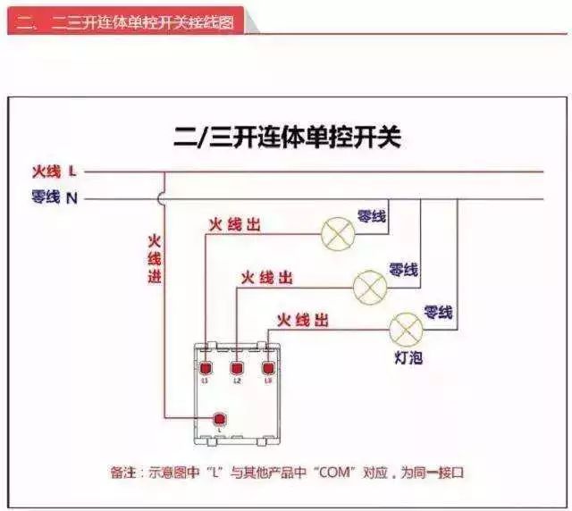 一般照明开关应装于火线上。